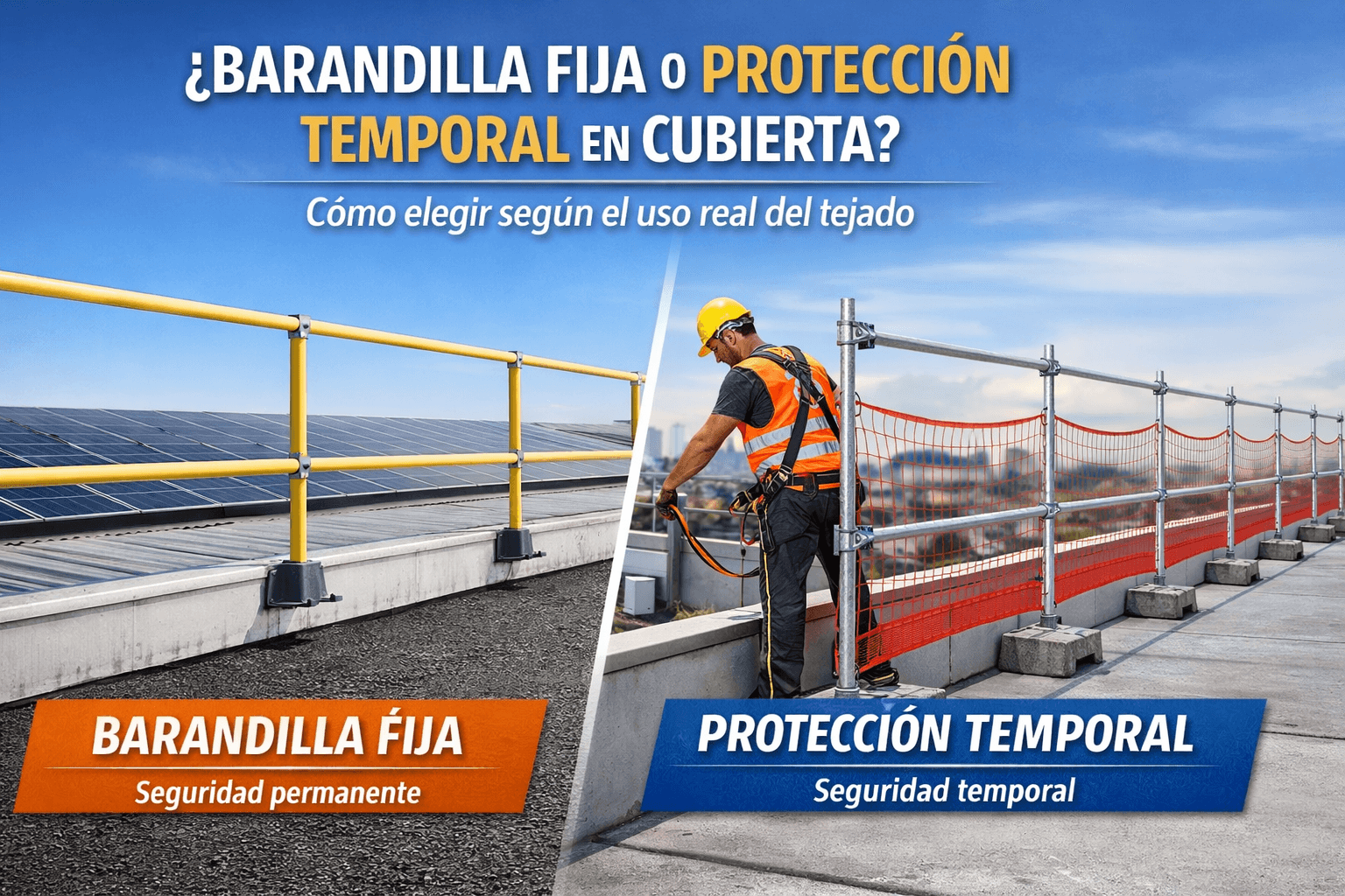 A escolha entre um corrimão fixo ou um proteção temporária de telhados não deve basear-se apenas no custo inicial ou na duração de uma intervenção. No contexto espanhol do Prevenção de riscos profissionais (PPO), Esta decisão é diretamente condicionada por um fator-chave: a utilização efectiva e a frequência de acesso ao telhado.